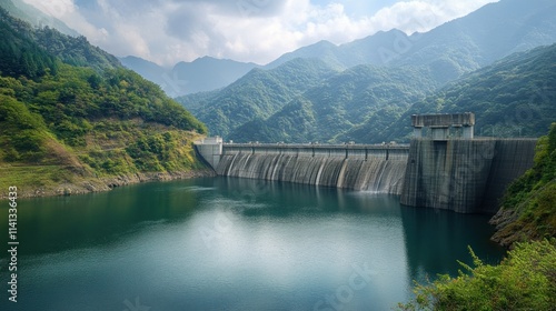 dam, lake, mountain, water, nature, landscape, scenery, reservoir, mountain, hill, green, blue, sky, cloud, environment, power, energy, electricity, engineering, construction, structure, architecture, rural, scenic, view, summer, travel, tour tourism, tranquil, calm, serene, picturesque, majestic, huge, wide, flowing, river, vale, wilderness, rock, tree, vegetation