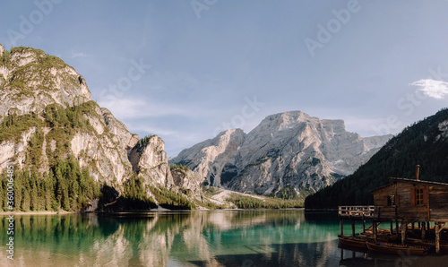 bergsee, panoramic, daylight, countryside, cliff, building, basin, abies, wood house, wood, wilderness, water, vale, tour tourism, scenic, scenery, rock, headland, peak, nature, mountain chain, mountain peak, mountain, landscape, lake, italy, fir, dolomite