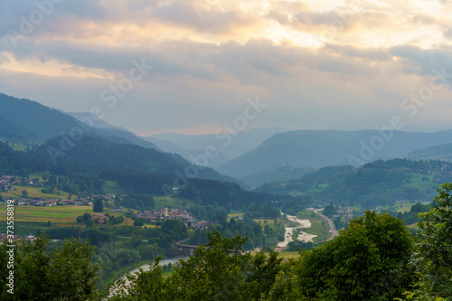 alps, dolomite, europa, italy, trent, colours, day, green, landscape, mountain, nature, photo, plant, river, scenic, summer, sunny, sunset, tree, vale