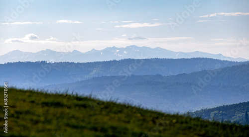 Mountain landscape in the Silesian Beskid with a view of the Tatra Mountains