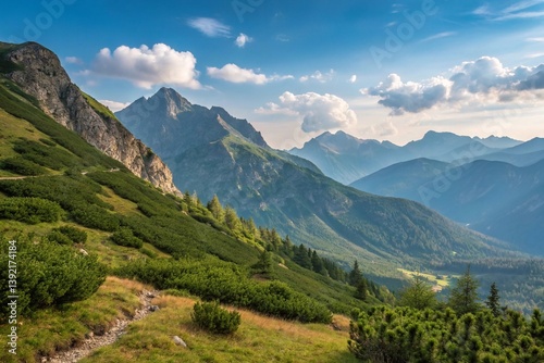 Mountain landscape photography, high detail, natural colors, for use in travel and nature blogs