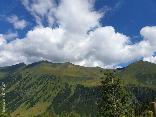 countryside, mountain, heaven, nature, green, blue, forest, cloud, summer, view, travel, hill, panorama, pretty, grass, snow, see, vale, tree, peak, meadow