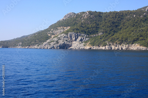 sea, ocean, water, coast, landscape, mountain, hill, cliff, turkey, blue water, greenery, summer