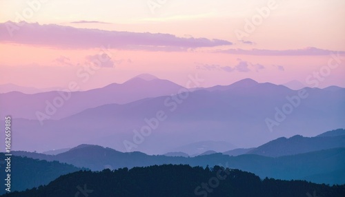 mountain, landscape, sunset, sky, pastel, pink, blue, horizon, range, vista, scenic, serene, calm, peaceful, nature, outdoors, dusk, twilight, cloud, layer, depth, distance, atmospheric, perspective, silhouette, ridge, vale, gradient, fading, soft, light, airy, aethereal, dreamy, beauty, majestic, expanse, huge, open, wilderness, environment, untouched, calmness, peacefulness, panoramic, breathtaking, stillness, quiet