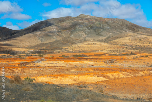 Mountain range with a large hill in the middle. Typical landscape of Fuerteventura, Canary Islands