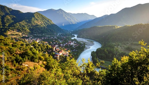 vale, mountain, river, village, green, nature, scenic, landscape, serene, beautiful, sunlight, summer, tranquil, peaceful, vista, viewpoint, travel, tour tourism, vacation, explore, adventure, photo, picturesque, breathtaking, idylli, charming, gold, sunlit, calm, natural, beauty, photo, view, hill, foliage