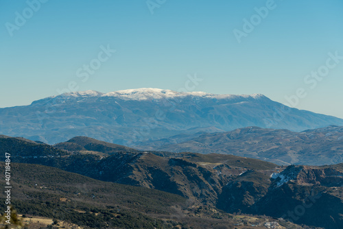 andalusia, bush, clear, cold, environment, granada, ice, landscape, mountain, mountainous, nature, sierra nevada, sky, snow, snowy, spain, stone, tree, vegetation, winter