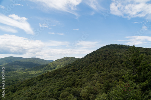 mountain, forest, nature, hike, vermont, hill, green, tree, timberland, scenic, scenery, sky, blue, white, cloud, trail