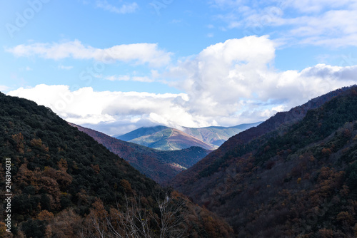 explore, spain, travel, vacation, mountain, fall, autumn color, blue skies, cloudy sky, cloud, sunshine, shadow, purple