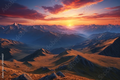 mountains with a sunset in the background