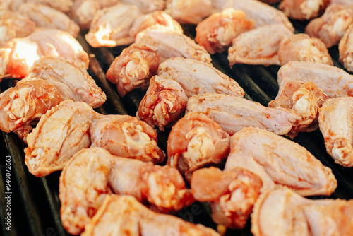Mouthwatering chicken wings grilling to perfection, an ideal treat for BBQ lovers and food enthusiasts