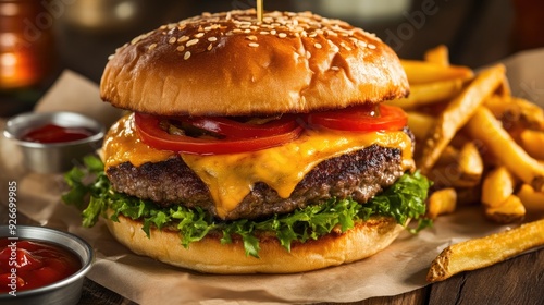Mouthwatering Gourmet Cheeseburger with Crispy Fries