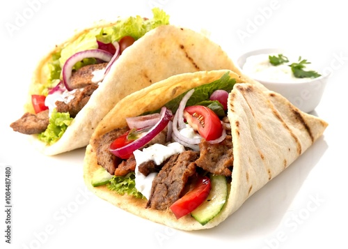 Mouthwatering Pita Gyros Fast Food Isolated on White Background with Clean Clipping Path, Perfect for Culinary Promotions, Food Blogging, and Restaurant Menus