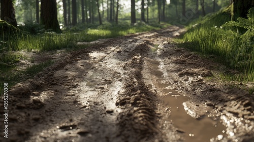 Muddy Forest Path: A Tranquil Woodland Trail