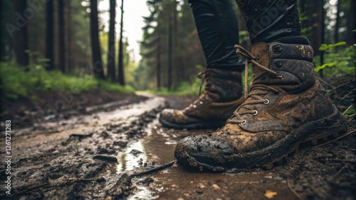 muddy, adventure, forest, trail, rainy, nature, exploration, footwear, closeup, ground, walking, summer, tree, damp, landscape, path, rustic, weathered, wilderness, rugged, trek, boot, travel, ecotourism, trekking, young adult, male, environment, moisture, earthy, hobby, leisure, ecology, fall, greenery, calmness, solitude