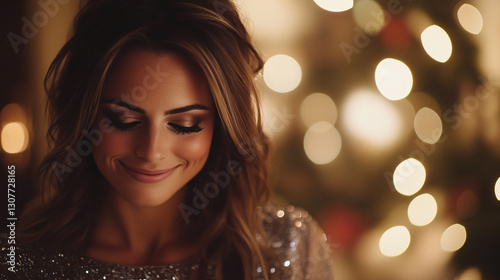 woman, portrait, smile, happiness, christmas, light, bokeh, sparkle, hot, party, celebration, glamour, fashion, elegant, make-up, evening, flash, winter, christmas, beauty, charme