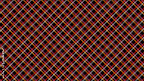 Multicolor diagonal check in the black background. Plaid checkered seamless pattern.