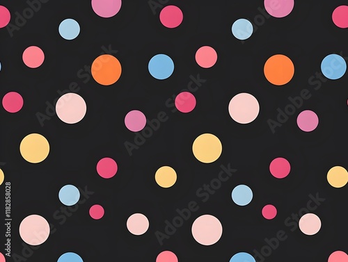 circle, pattern, black, background, pink, red, orange, yellow, blue, pastel, repeating, design, texture, colourful, vibrant, dot, pois, graphic, seamless, surface, print, wallpaper, fabric, style, trend, modern, abstract, geometric, shape, element, colours, palette, illustration, digital, artwork, visual, image, art, composition
