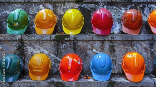 many-coloured, safety, construction, men at work, hat, concept, protection