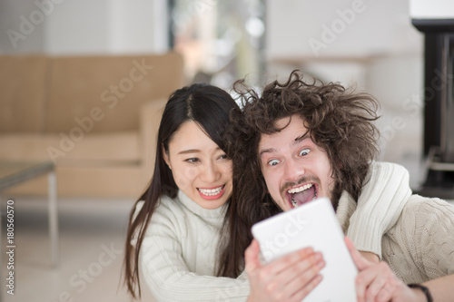 tablet, woman, people, person, searching, black, smile, girl, relax, background, cyberspace, asian, lovely, fireplace, charming, attractive, life, adult, in, thoughtful, winter, couple, casual attire, man, female, computer, portrait, cute, lifestyle, young, up, cold, surfing, look, web, face, trendy, thinks, beauty, hair, stylish, front, style, beautiful, pretty, luxury, floor, home