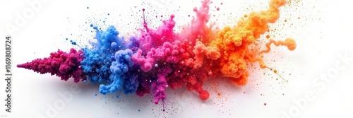 Multi-hued powder explosion, sharp contrast against pure white backdrop , powder, vibrant texture, paint