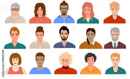 Multinational and mixed age people avatars. Portraits of diverse men and women of different races. Set of user profiles. Colored flat vector illustration