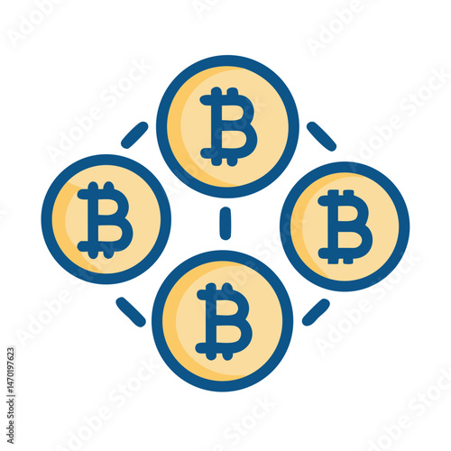 Multiple Bitcoin Coins Icon – Digital Cryptocurrency and Blockchain Symbol