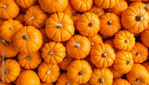Multiple small pumpkins background. Creating a cozy seasonal background perfect for fall-themed designs