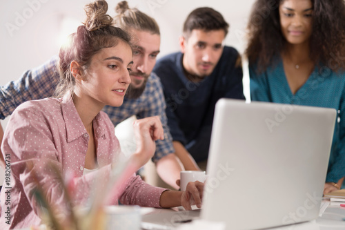 Multiracial business team working together around a laptop