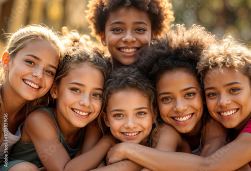 friends, smiling, happy, multiracial, woman, teenage, diversity