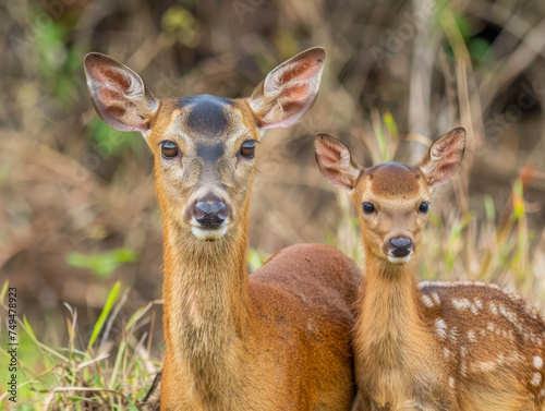 standing, forest, wild nature, wild, cervid, fawn, doe, wildlife, nature, animal, mother, baby, peaceful, graceful, ear, togetherness, serene, timberland, undomesticated, conservation, ecology, herbivore, calm, watchful, environment, biodiversity, gentle, protective, daytime, tranquil, family, maternal, alert, bonding, tender, nurturing