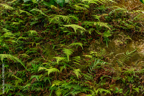 muro verde com samambaias selvagens