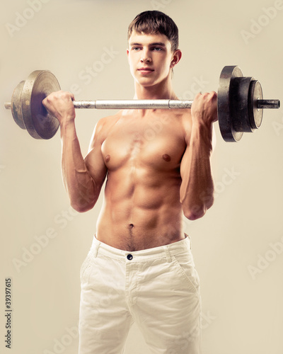 man, work, physical exercise, bar, torso, muscular, muscle, photogenic, sport, male, body, press, belly, waist, bicep, rod, barbell, lift, arm, sporty, sportsman, bodybuilding, bodybuilder, isolated, studio, brown, athlete, athletic, attractive, beauty, caucasian, chest, fit, fitness, guy, health, healthy, model, person, sexy, strong, training, weightlift, white, young, jean