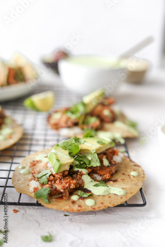 mushroom chipotle tacos with avocado crema