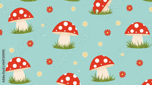 mushroom, nature, toadstool, vector, fungal, illustration, cartoon, grass, autumn, forest, fungal, plant, red, amanita, summer, poisonous, poison, leaf, fly, colours, art, cute, pattern, agaric
