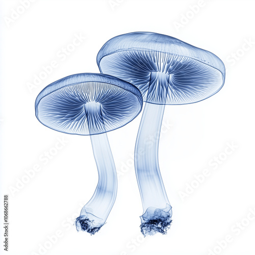 mushrooms X-Ray Photo on White Background | Botanical Photography