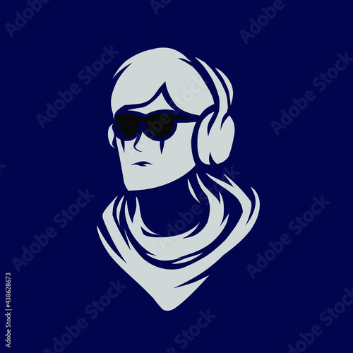 age, art, badge, cartoon, character, computer, concept, console, control, controller, design, emblem, face, fashion, fun, goggles, graphic, head, earphones, headset, hipster, human, icon, illustration, isolated, label, logotype, lover, male, man, mascot, music, moustache, party, people, person, player, retro, rock, signs, sound, sport, style, symbol, team, technology, vector