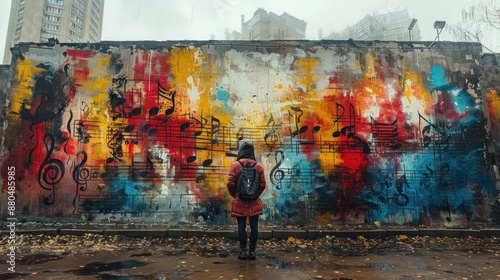 wallpainting, music, city, urban, art, street, graffiti, wall, note, colours, building, paint, design, creative, expression, culture, background, abstract, symbol, painting, artistic, architecture, contemporary, modern, public, vibrant, colourful, inspiration, style, visual, streetlife, artwork, photo, scene
