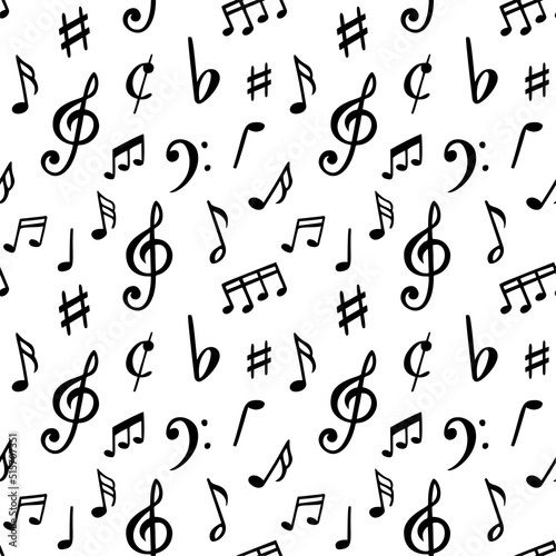 Music notes pattern. Seamless song notation sheet symbols, abstract musically note vector illustration