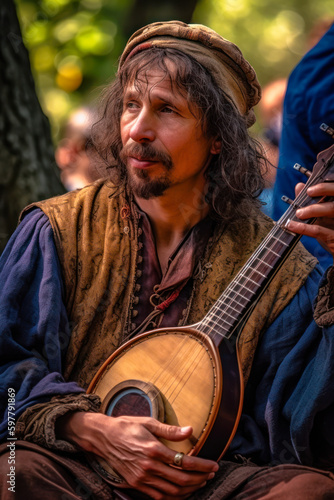 musician, playing, lute, renaissance, fair, festival, mediaeval, performer, music, instrument, vertical, musical, performance, event, celebration, colourful, colourful, entertainment, european, outside, park, period, photo, travel, live, person, man, male, portrait, illustration
