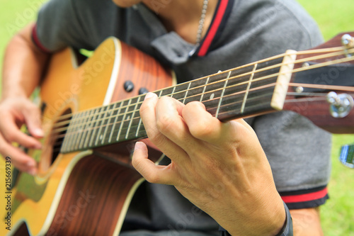 Musician playing guitar in the park