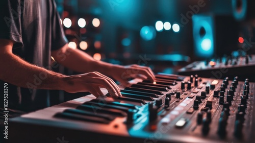 Musician recording song, studio background, clean design,