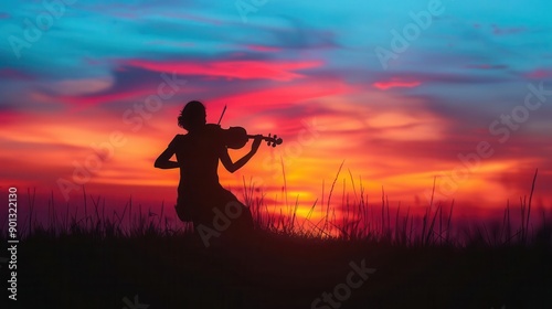 Musicians Silhouette A silhouette of a musician playing against a colorful sunset