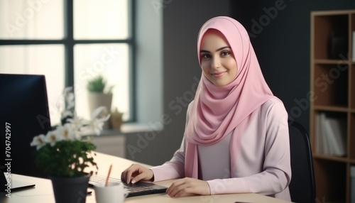 business, muslim, businesswoman, female, woman, office, young, arab, professional, work, arabic, computer, happy, modern, laptop, traditional, corporate, online, islam, entrepreneur, manager, cyberspace, technology, successful, person, islamic, working, middle eastern, career, smiling, asian, cheerful, lady, face, 1, arabian, woman, portrait, workplace, beautiful, girl, pretty, startup, people, desk, empowerment, e-business