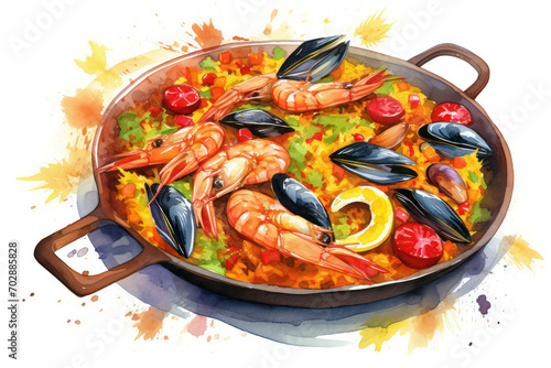 Mussel seafood paella traditional spanish prawn food shrimp background rice mediterranean