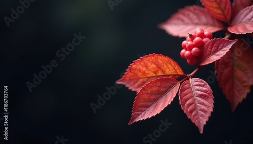Muted berry hues and orange leaves create a serene atmosphere on black, leaf drop, colorful berries