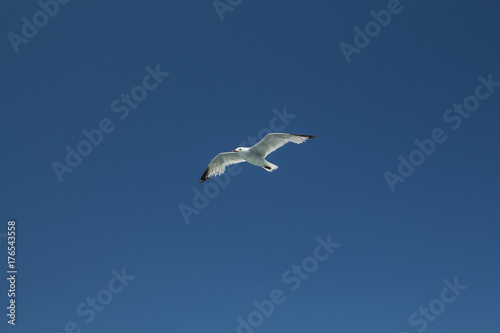 bird, gull, heaven, fly, flying, blue, sea, nature, liberty, animal, white, wing, air, hover, wildlife, beak, ocean
