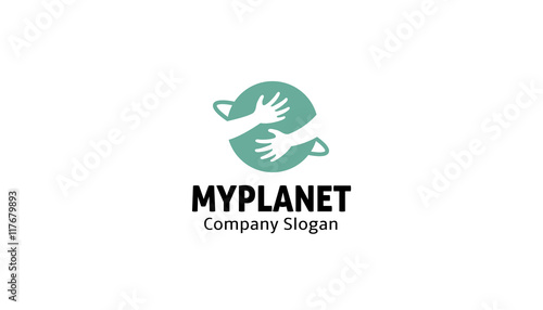 My Planet Hands Hold World Logo Vector Symbol Design Illustration