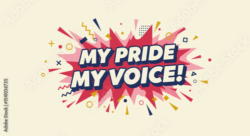 pride, voice, comic, pop art, retro, explosion, burst, speech, bubble, cartoon, graphic, design, art, style, text, typography, lettering, font, expression, statement, message, empowerment, activism, right, equality, identity, self, speak, shout, loud, strong, bold, confident, positive, motivation, inspiration, freedom, celebration, announcement, declaration, motto, quote, abstract, background