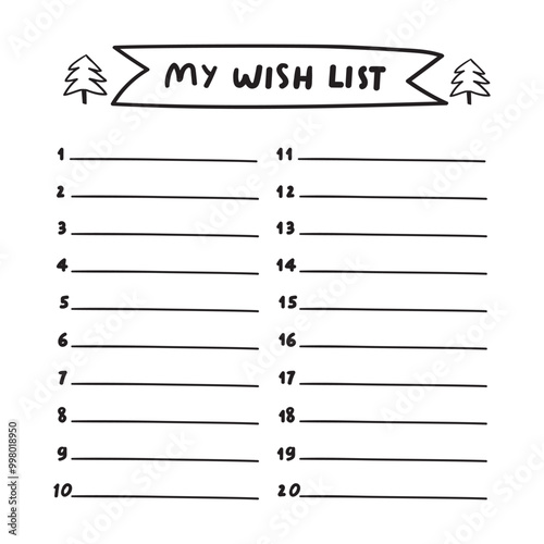 My wish list. Template. Hand drawn vector design on Christmas holidays. Illustration